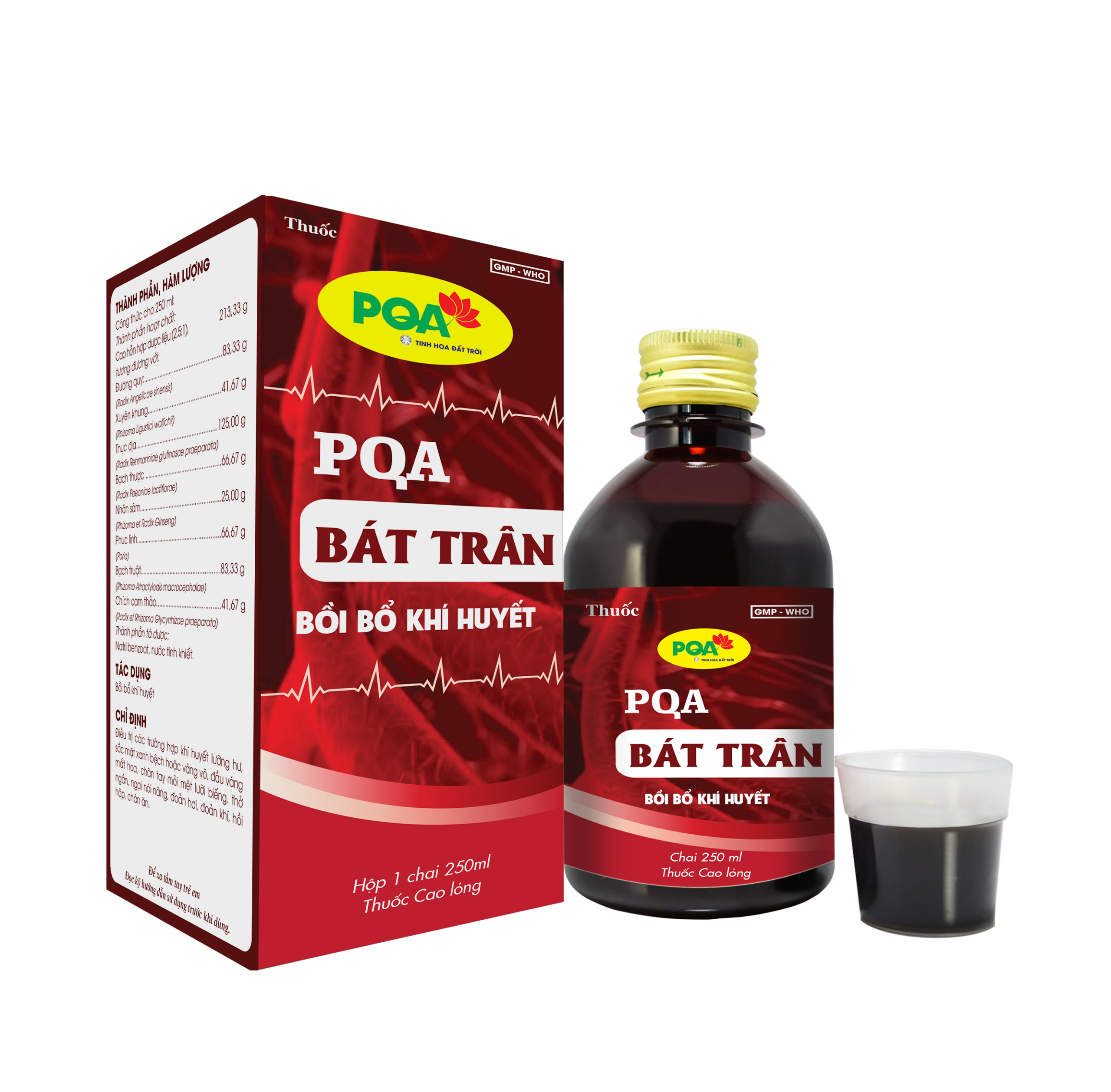 DẠNG BÀO CHẾ: Cao lỏng màu nâu, mùi thơm dược liệu, vị ngọt đắng.